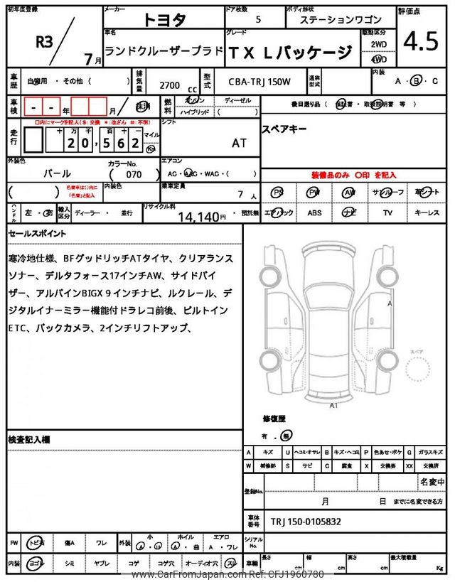 Model CodeCBA-TRJ150W