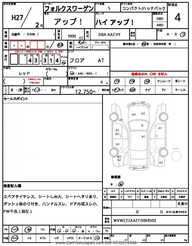 Volkswagen Up 2015 for sale in Uganda - Ugx. 31,278,312